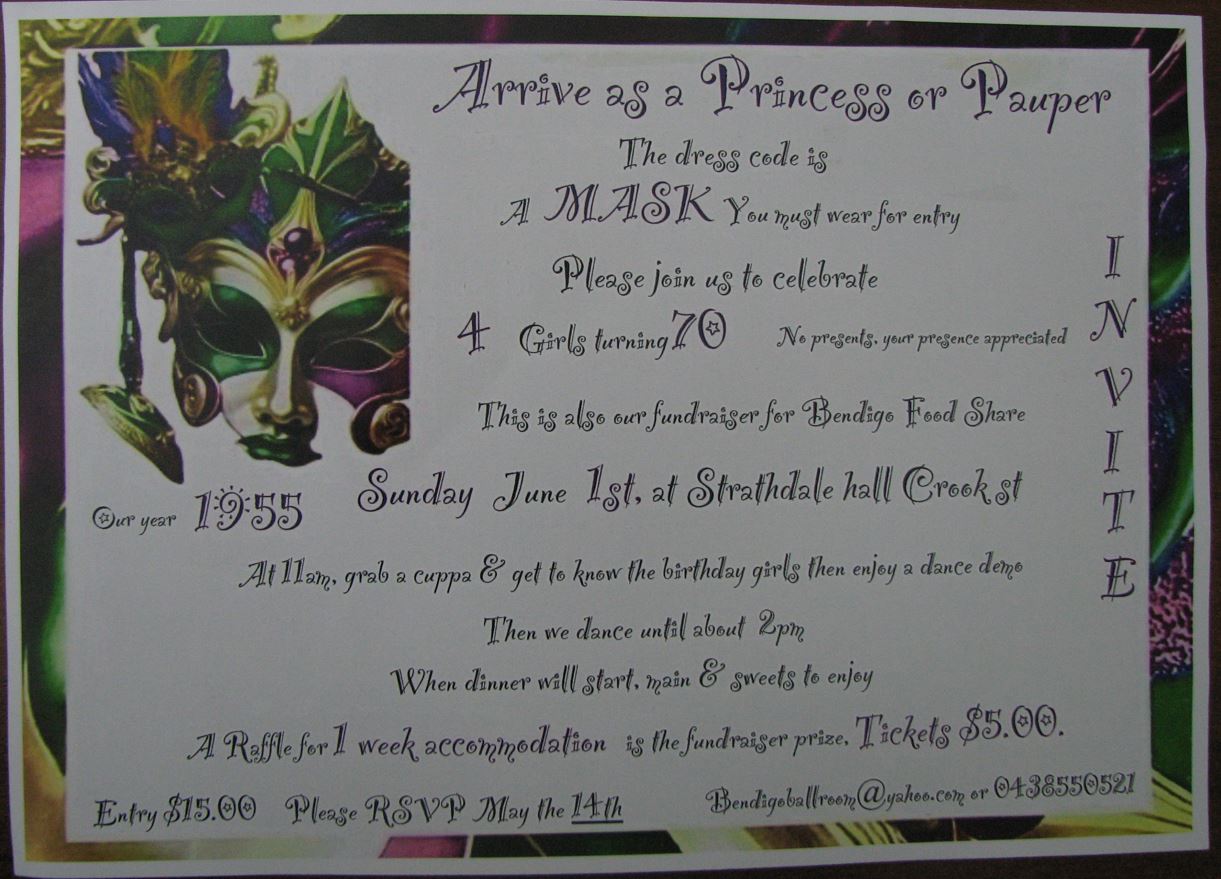 This is a Birthday dance celebrating the year 1955 when 4 of the clubs ladies were born. It is also the major fundraiser for their Foodshare donation this year and there is a weeks accommodation at Timeshare villages to be drawn on the day which has been kindly donated by Daryl and Jenise Smallman.