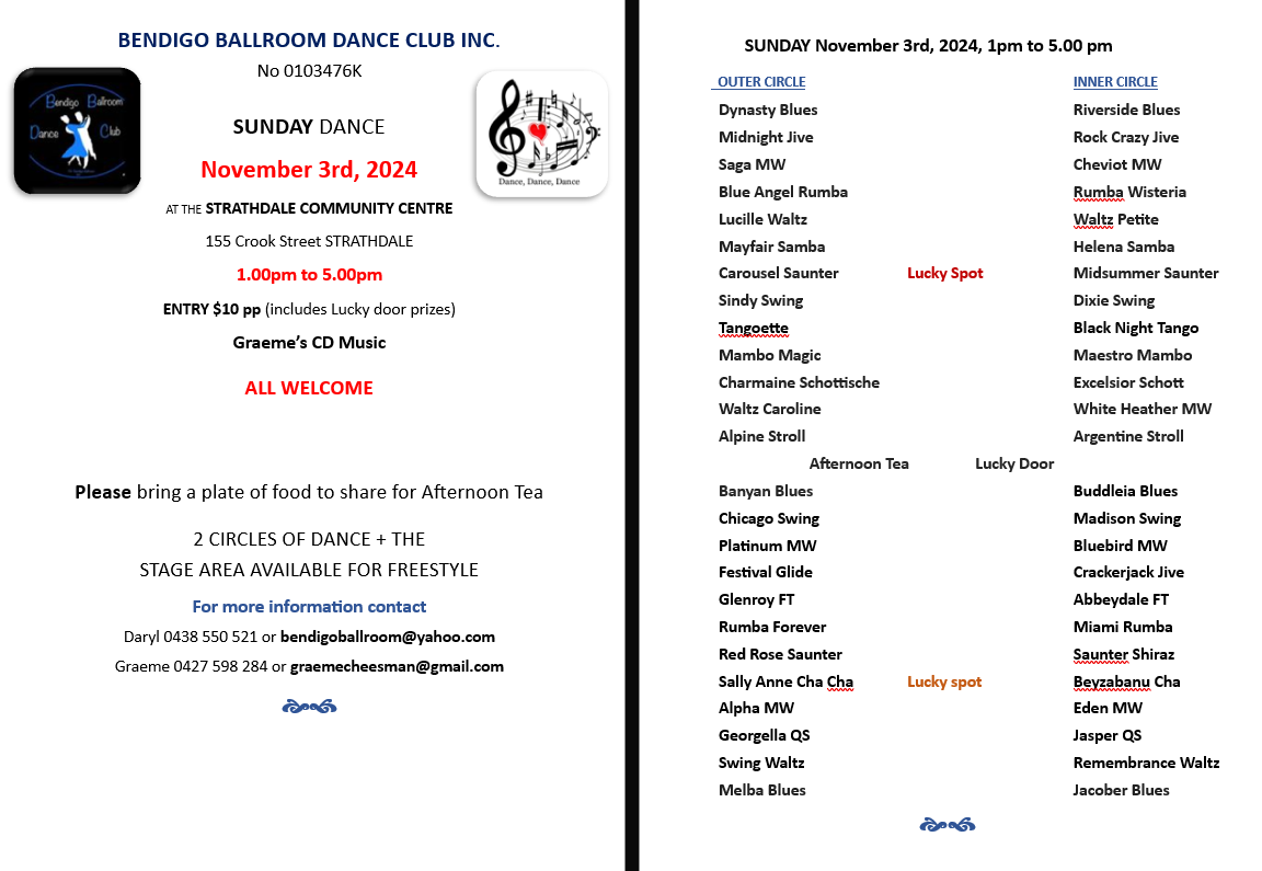 The Bendigo Ballroom Dance Club are providing a Monthly 1st Sunday (except January) Ballroom dancing event for your participation and enjoyment. The January event will be held on New Years Day 2025. All dancers welcome