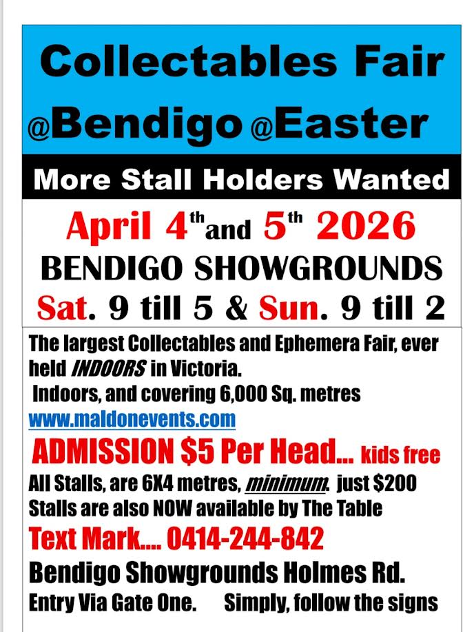While it could be argued, the “Bendigo Easter Collectables Fair,” is the most exciting collectables fair in Australia, one thing beyond doubt is. in the process of occupying one and a half acres, (6,000 Sq. Mts,) it is undeniably, the largest collectables fair in Australia.
