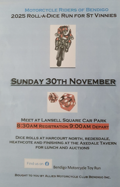 The 2025 Roll-A -Dice Run for St Vinnies is on again from 8.30am Sunday 30th of November.