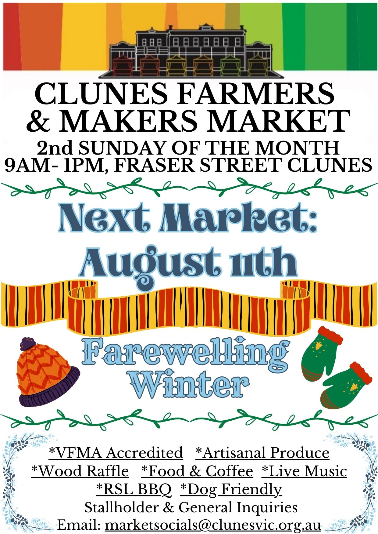 The 2nd Sunday of the months sees Fraser Street, Clunes turn into a bustling tiny town, VFMA accredited Farmers Market.