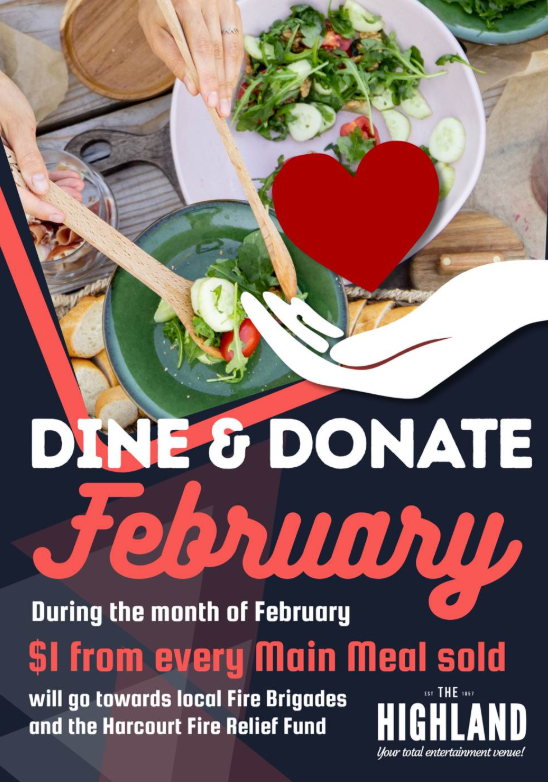 The Maryborough Highland Society will dedicate the entire month of February to supporting local fire response and recovery efforts, announcing that $1 from every main meal sold will be donated and shared between The Central Goldfields Group of Fire Brigades—to assist with essential equipment purchases—and The Harcourt Fire Relief Fund, supporting communities affected by recent fires.