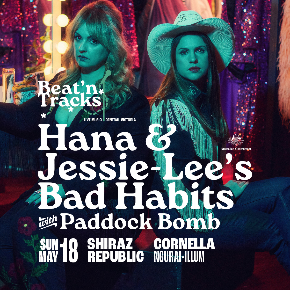 Don’t miss the chance to see Hana & Jessie-Lee’s Bad Habits perform live—with support (and a rare local appearance) from Castlemaine locals, Central Victorian sisters of shred, Paddock Bomb.