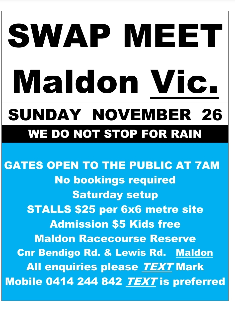 November 26thth Maldon Vic. Swap Meet…. The last one for 2023