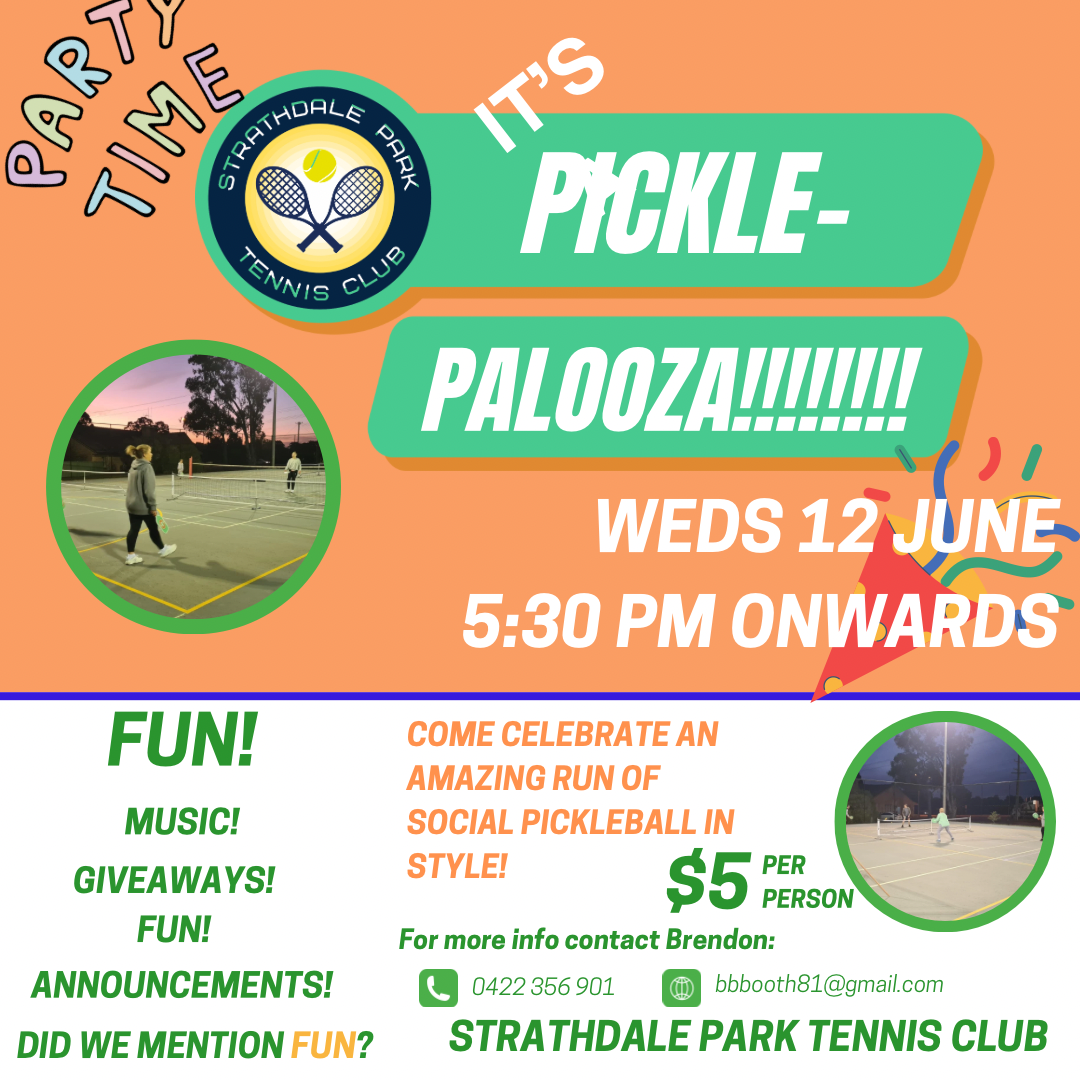 Having run 11 fantastic weeks of social pickleball at Strathdale Park Tennis Club, we’re going out with a bang! In addition to super fun and friendly social pickleball, we’ll have music, giveaways, some announcements about the future, and most importantly lots of fun!