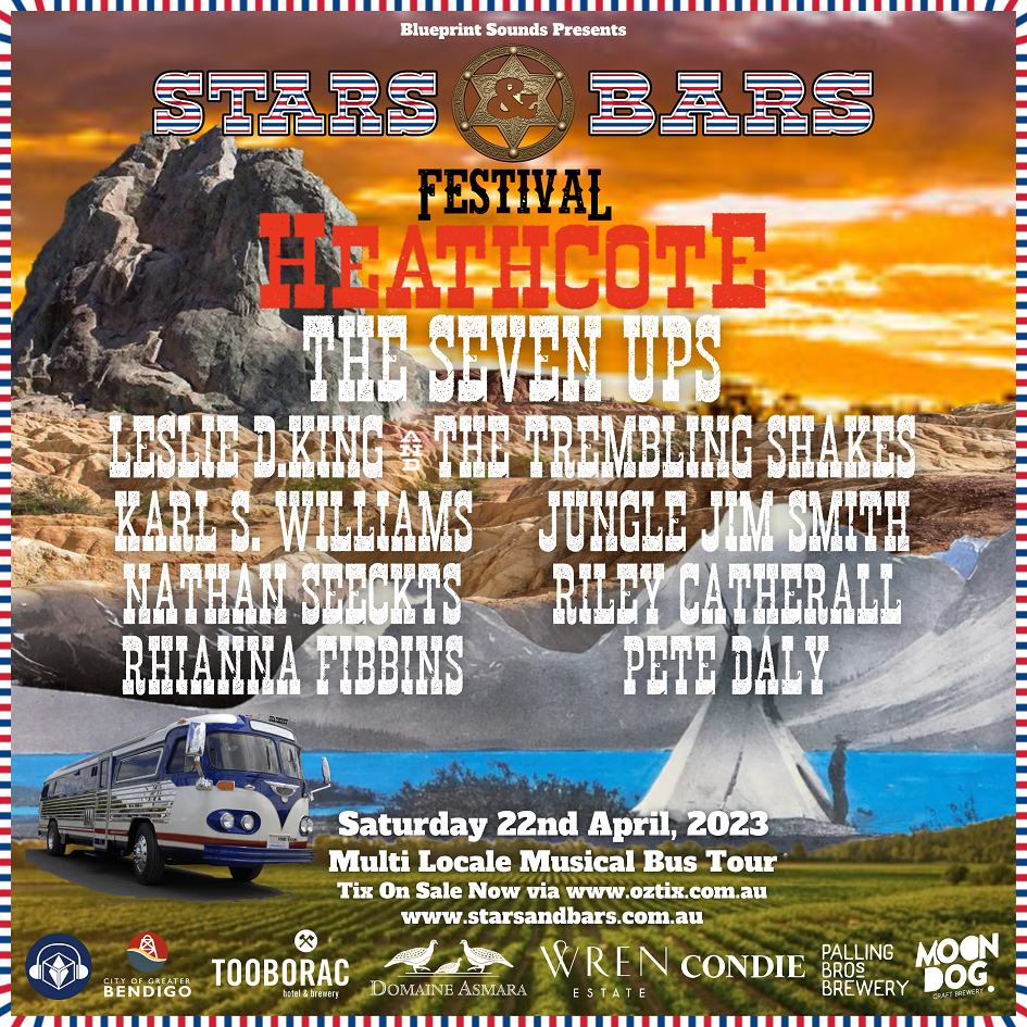 The Trail Blazin’, Star Gazin’, Hell Raisin’ Countrified Music Festival Concept, part magical mystery music tour part winery/brewery tour, returns to Heathcote on Saturday 22nd April, 2023.