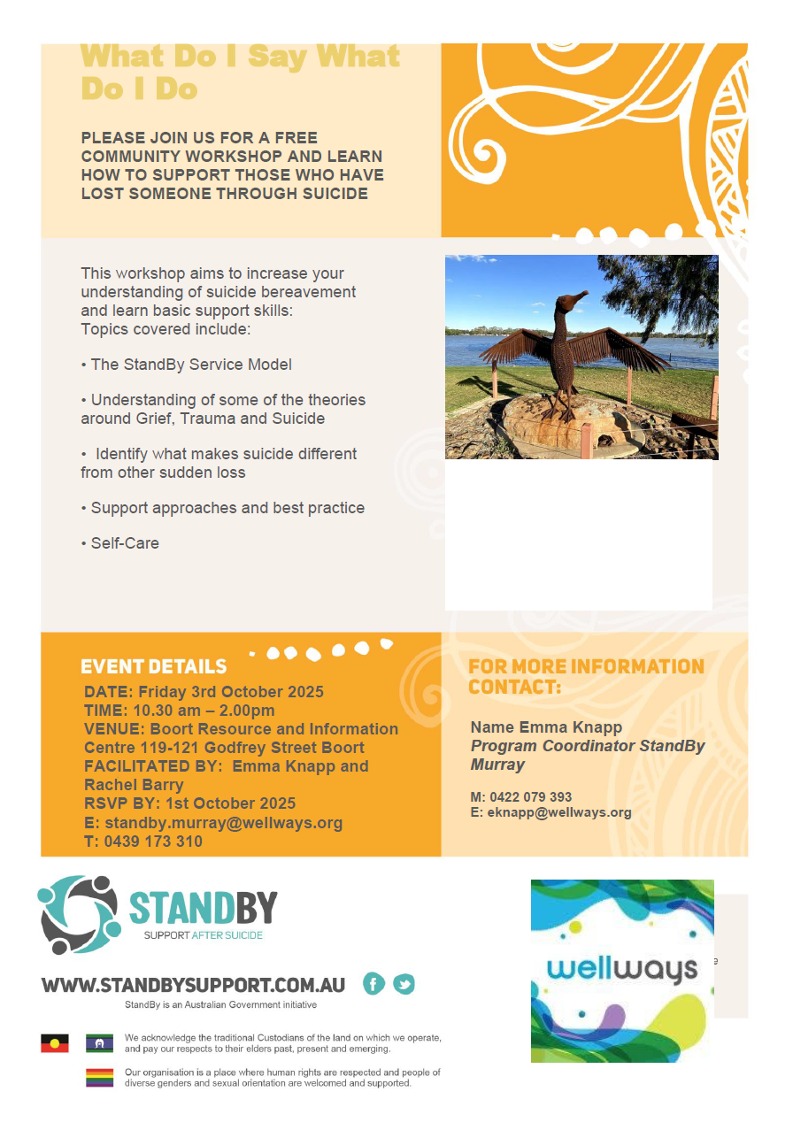 This is a free community workshop for anyone who has wanted to learn how to support someone bereaved or impacted by suicide loss.
