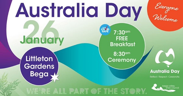 Bega Valley Shire Council has invited the shire’s residents to its COVID Safe Australia Day celebrations on Wednesday 26 January with a free breakfast to be provided at 7.30am in Bega’s Littleton Gardens.